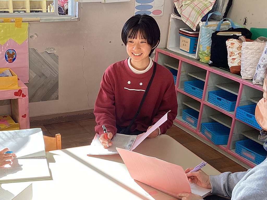 こども園は、こども、保護者、保育教諭、地域の方々など、たくさんの人と出会う場です。いろいろな事情を抱えている方もいます。学生時代からアルバイト先、サークル活動、ボランティア活動などで、年齢層、性別、性格、国籍などが異なるたくさんの人と関わる機会をもっておくといいと思います。